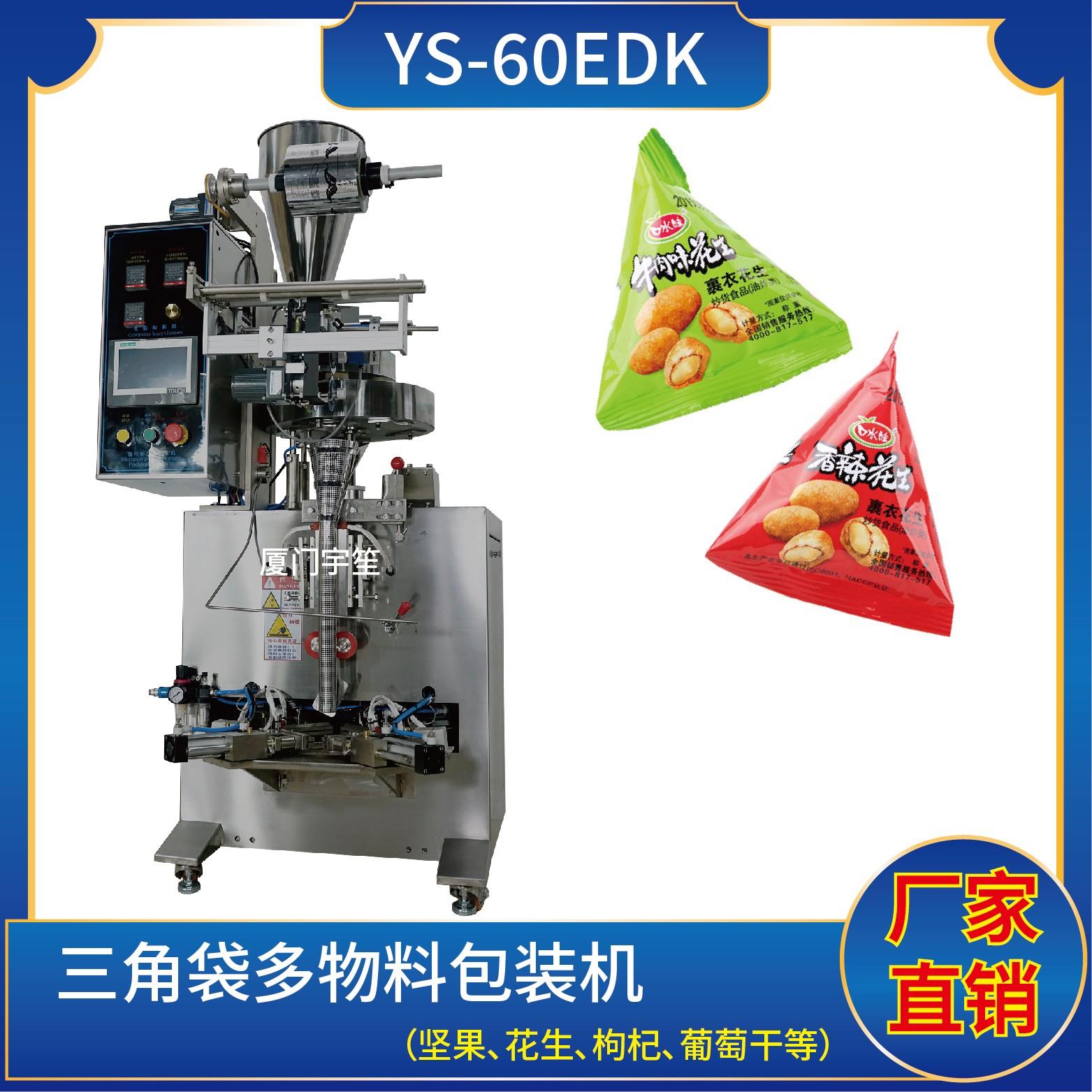 YP-60EK 三角袋包裝機特點1、適用于食品、醫(yī)藥、化工、化妝品行業(yè)中顆粒物品的計量包裝。2、可自動完成制袋、計量、下料、封合、分切、計數(shù)、且可根據(jù)客戶要求配置打印批號等功能。3、觸摸屏操作,PLC 控制,驅動步進電機控制袋長,性能穩(wěn)定、調整方便、檢測準確。智能式溫控儀,PID調節(jié),保證將溫度的誤差范圍控制在1℃以…