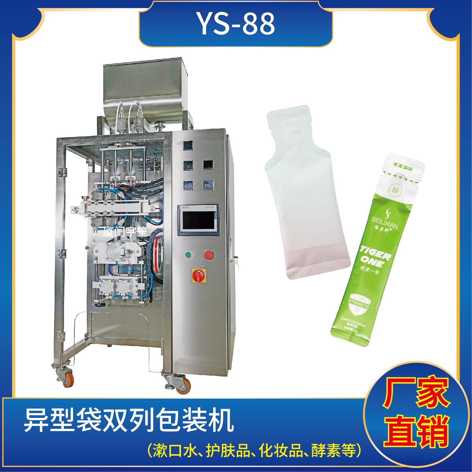 YS-65JL 異型袋包裝機(jī)特 點(diǎn) 1、適用于食品、醫(yī)藥、化工、化妝品行業(yè)中液體、醬料等物品的計(jì)量包裝。2、可自動(dòng)完成制袋、計(jì)量、下料、封合、分切、計(jì)數(shù)、且可根據(jù)客戶要求配置打印批號(hào)等功能。3、觸摸屏操作,PLC 控制,驅(qū)動(dòng)步進(jìn)電機(jī)控制袋長,性能穩(wěn)定、調(diào)整方便、檢測(cè)準(zhǔn)確。智能式溫控儀,PID調(diào)節(jié),保證將溫度的誤差范圍…