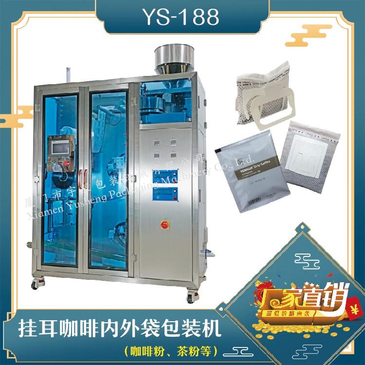 YS-188 掛耳咖啡內(nèi)外袋包裝機(新框式)特 點 1、適用于咖啡粉、小顆粒狀物料。2、采用特定的掛耳式濾網(wǎng)、三邊封口、直接掛在杯子邊緣,咖啡沖泡效果更好,且袋型美觀,目前國外市場非常流行。3、本機具有自動完成制袋、計量、充填、封合、分切、計數(shù)、打印批號等功能。4、內(nèi)袋為無紡布掛耳袋,沖泡方便且衛(wèi)生。封口采用先進…
