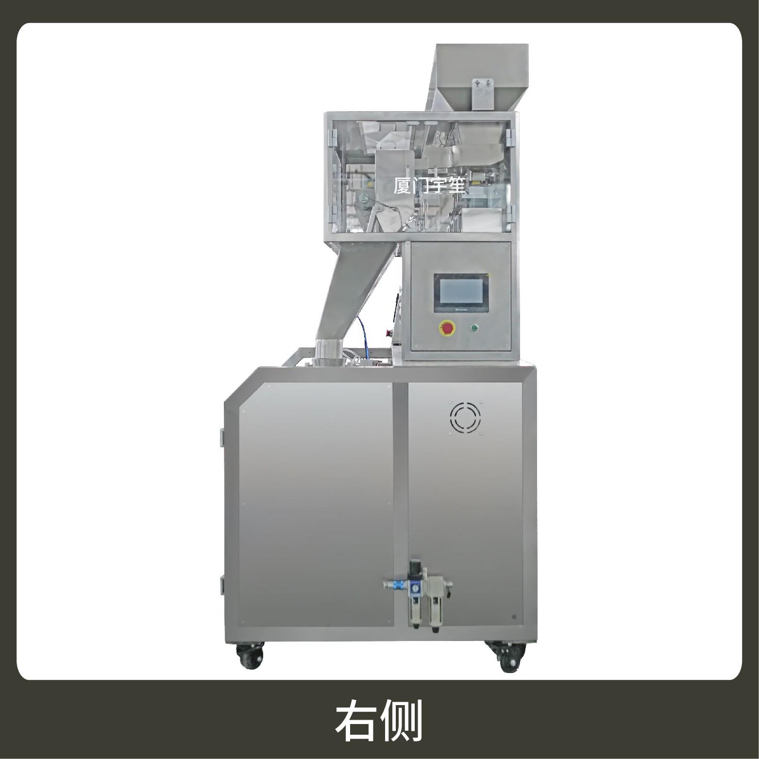 2、用于自封袋、站立袋、拉鏈袋,可抽真空、充氮?dú)?。包裝流程全自動(dòng),無(wú)需人工操作??筛鶕?jù)充填物料的性質(zhì)選配不同的下料結(jié)構(gòu),且可根據(jù)客戶要求配置打印批號(hào)等功能。